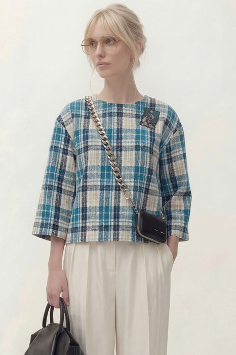 Джемпер Lokka 1858С белый/бирюзовый клетка