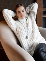Джемпер женский свободного силуэта со спущенными плечами. По переду подрезы. Горловина круглая. Рукава одношовные втачные на манжете. Украшает джемпер печать.