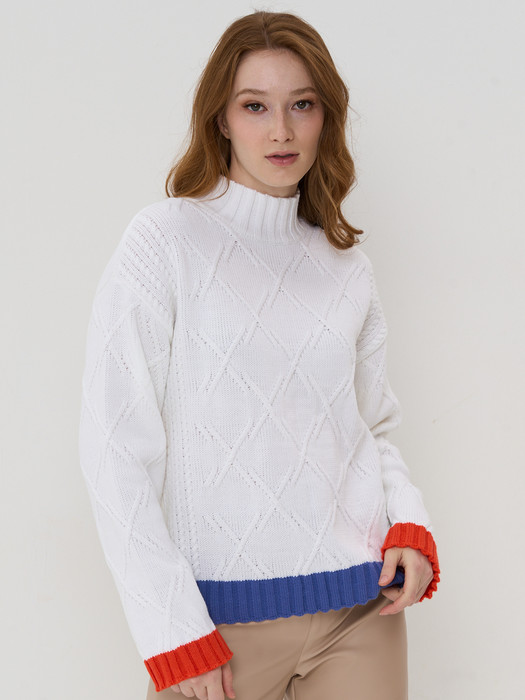 Джемпер NewVay 7232-40199 белый/звёздная пыль/оранжевая осень
