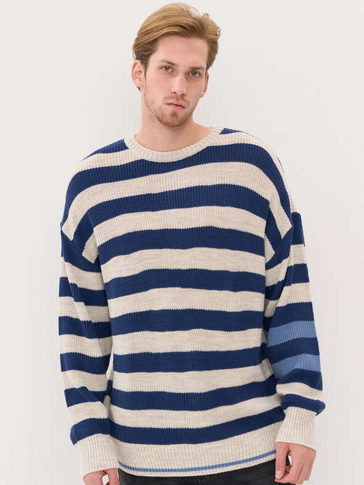 Джемпер NewVay 7242-15052 св.бежевый/индиго/зимнее утро