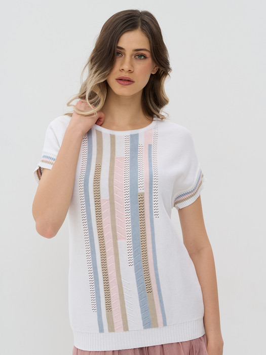 Джемпер NewVay 9241-94115 белый/туманная роса/св.верба/розовый жемчуг