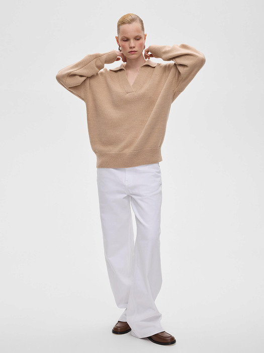 Совместные покупки Уфа Женская одежда Джемперы, свитеры, водолазки — Джемпер-поло свободного кроя, бежевый
