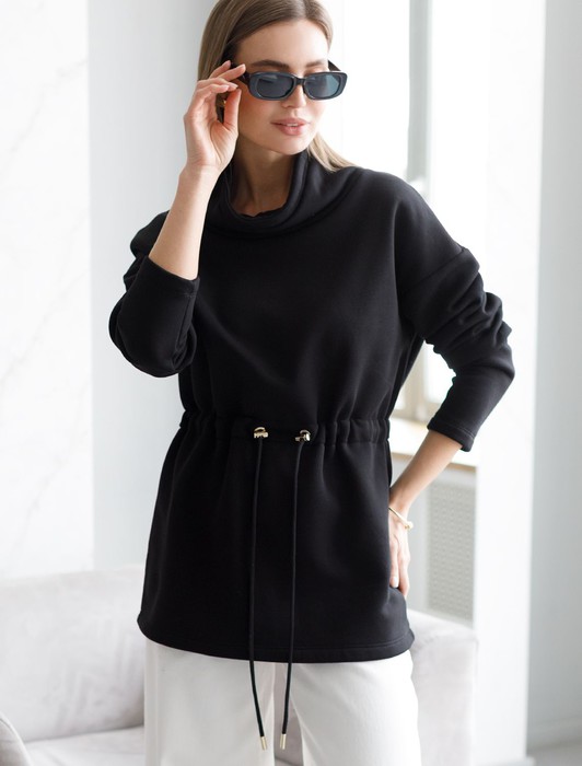 Совместные покупки Уфа Женская одежда Футболки — Джемпер с объемным воротом и шнуром на талии из футера-трехнитки