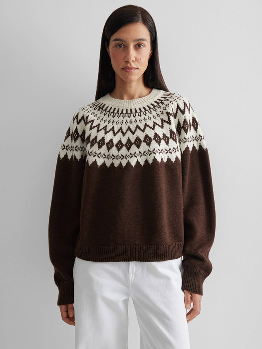 Джемпер свободного кроя с круглым вырезом горловины и узором фэйр айл.