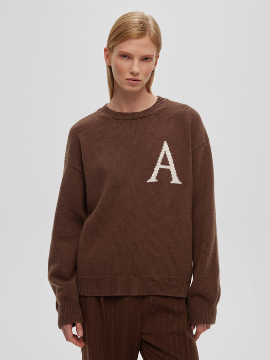 Джемпер выполнен в колледж-стиле и украшен вывязанной буквой "А" с использованием техники "интарсия". Его универсальная модель включает спущенную линию плеча, круглый вырез горловины и резинки на рукавах и по низу, что обеспечивает комфортную посадку для любой фигуры.