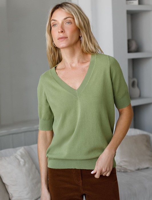 Состав: 83%Вис 17%ПА Параметры модели на первом фото: Рост 170, бюст 83, талия 64, бедра 88 Размер товара на первом фото: 42Джемпер тонкой вязки выполнен из вискозы с нейлоном. Модель с V-вырезом свободного силуэта. Мягкая очень приятная к коже пряжа не колется, хорошо держит форму и гарантирует комфорт во время носки в течение всего дня. Изделие дополнено фирменным металлическим логотипом бренда.