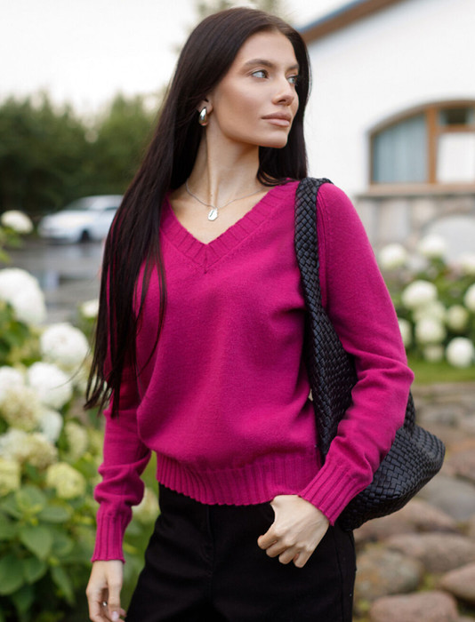 Джемпер с V-вырезом выполнен из мягкой пряжи с кашемиром. Лаконичная, женственная и универсальная модель будет одинокого хорошо смотреться, как самостоятельный верх, либо на блузку, как более теплый вариант. Благодаря своей универсальности подойдет для любого гардероба и в офисный дресс-код. Мягкая пряжа очень приятная к телу, поддержит комфорт на протяжении всего дня, при этом не перегревая. Сочетается в костюме с брюками D38.013, D38.012 и юбкой D36.016