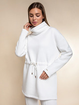 14.04 Vilatte Джемпер с объемным воротом и шнуром на талии из теплого футера-тре