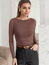 Vilatte Джемпер с прозрачными рукавами D29.278 кофейный