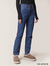 Брюки-джинсы прямого силуэта.  На притачном поясе со шлёвками, застежкой-гульфик. Пояс застегивается на петлю-пуговицу. По переду карманы. По спинке кокетка, накладные карманы.