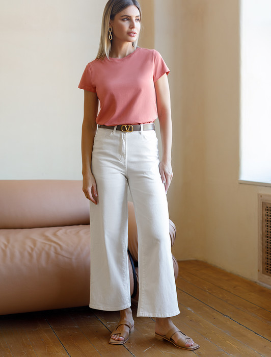 Состав: 100%ХлопокКюлоты из денима универсального белого цвета – идеальная база непринужденного повседневного образа весна-лето. Модель с высокой посадкой выполнена из хлопка с добавлением 2% эластана, что обеспечивает непревзойдённый комфорт в жаркое время года. Изделие дополняет высококачественная фурнитура с логотипом бренда.