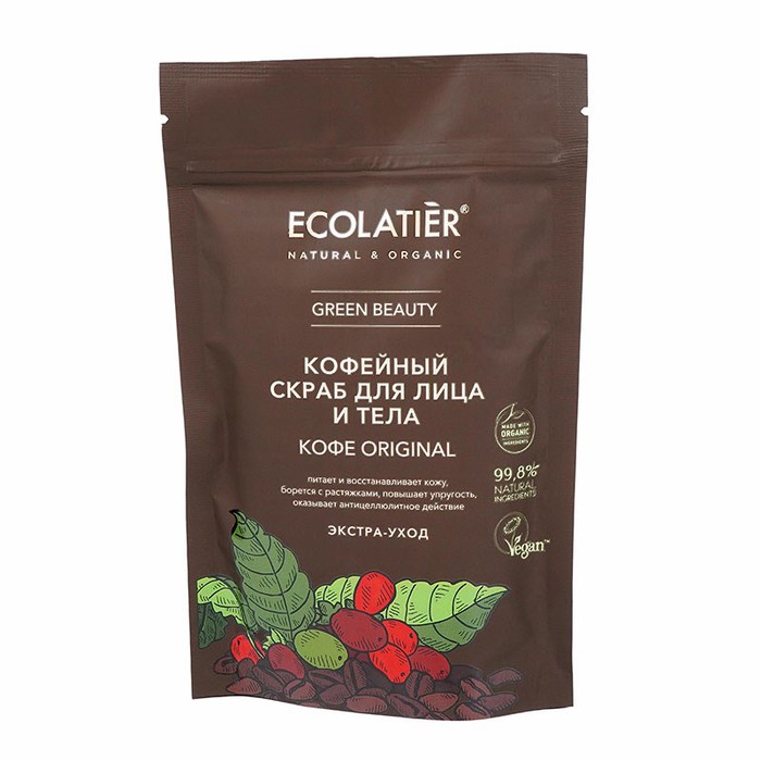 Скраб для лица и тела ECOLATIER® КОФЕ ORIGINAL обеспечивает экстра-уход, эффективно очищает и улучшает состояние кожи. Активизирует процесс сжигания жировых отложений и лимфодренаж.