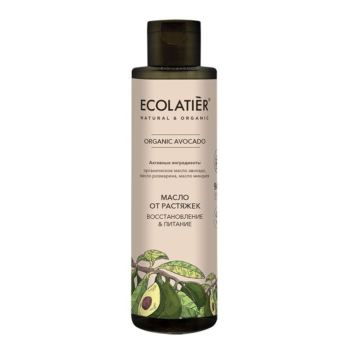 Масло от растяжек ECOLATIER® Organic Avocado с ценными маслами и активными ингредиентами в составе глубоко питает коллаген-эластиновые волокна, предупреждает растяжение кожи и появление рубцовых изменений вследствие микротравм отдельных волокон.