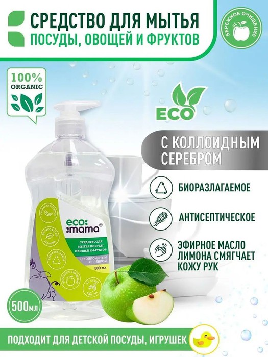 Совместные покупки Уфа Хозтовары и личная гигиена Средства для мытья посуды — ECOMAMA Эко-Средство для мытья посуды, овощей и фруктов, с коллоидным серебром