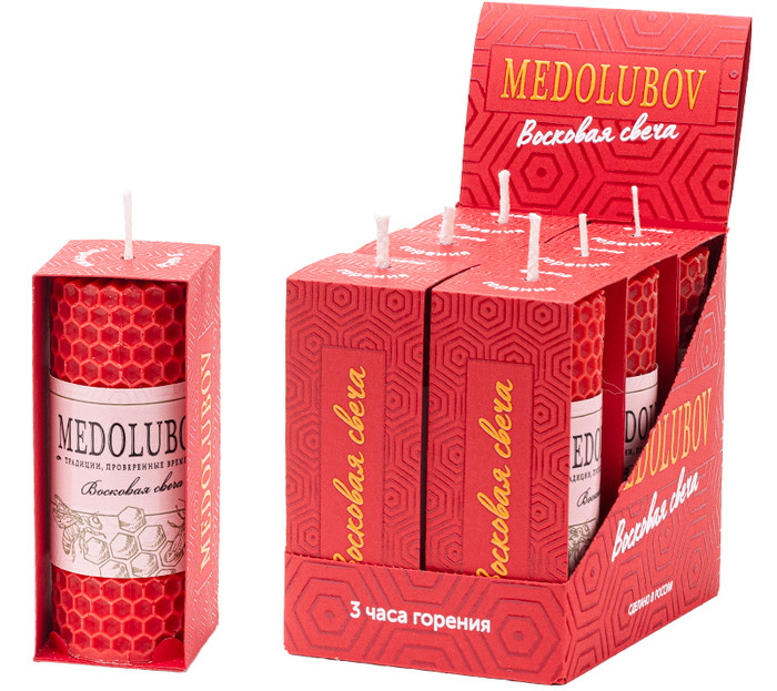 Восковая Свеча МЕДОЛЮБОВ Красная