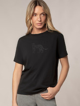 Vilatte Футболка из премиального хлопка с авторским принтом D49.110 черный_леопа