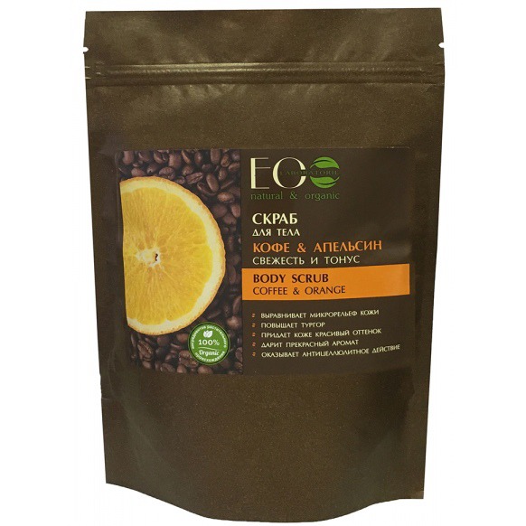Скраб для тела на основе натурального кофе и цедры апельсина пробуждает кожу, освежает, тонизирует и заряжает энергией красоты и молодости.