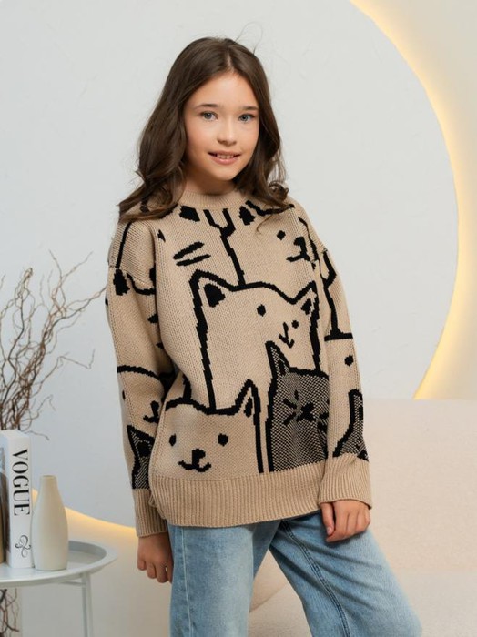 Совместные покупки Уфа Детская одежда Джемперы, свитеры — ESENIA Джемпер для девочки Кошечки - Бежевый
