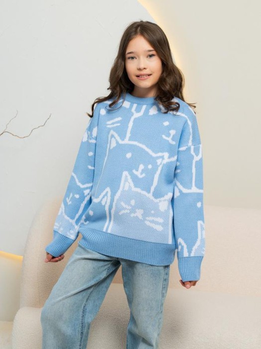 Совместные покупки Уфа Детская одежда Джемперы, свитеры — ESENIA Джемпер для девочки Кошечки - Голубой