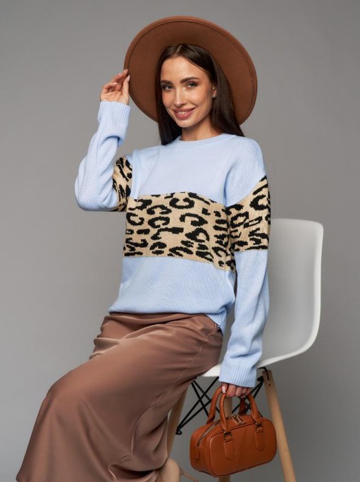 Совместные покупки Уфа Женская одежда Джемперы, свитеры, водолазки — ESENIA Джемпер женский с полосой - Нежный-Голубой