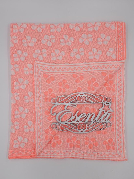 ESENIA Плед детский двусторонний полушерсть Цветы, Персиковый