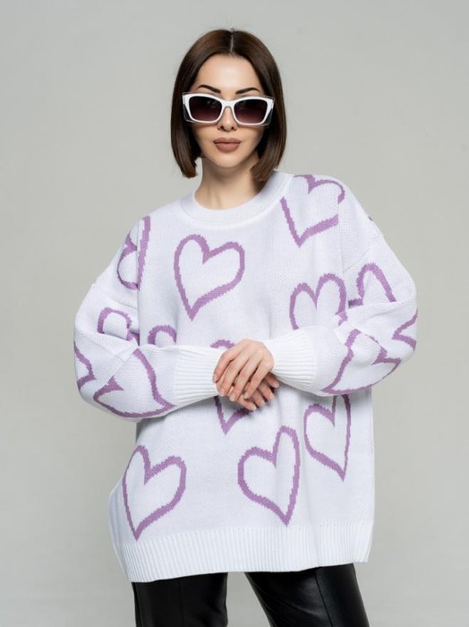 Совместные покупки Уфа Женская одежда Джемперы, свитеры, водолазки — ESENIA Свитер молодежный полушерстяной - Сиреневые сердечки