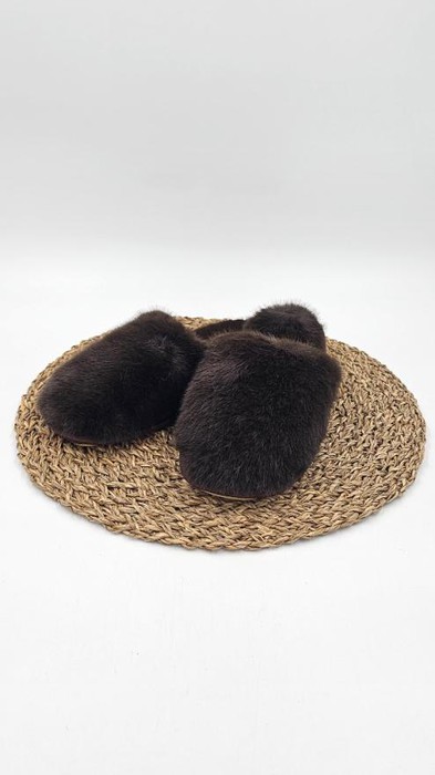 Совместные покупки Уфа Женская обувь Домашняя обувь — ESENIA Тапочки домашние женские из меха эко-норки - Коричневый