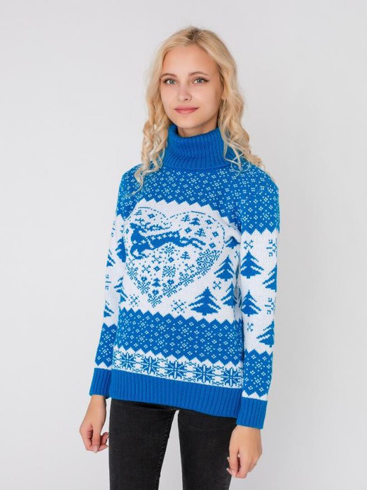 Совместные покупки Уфа Женская одежда Джемперы, свитеры, водолазки — ESENIA Водолазка женская полушерстяная Олени - Бирюза