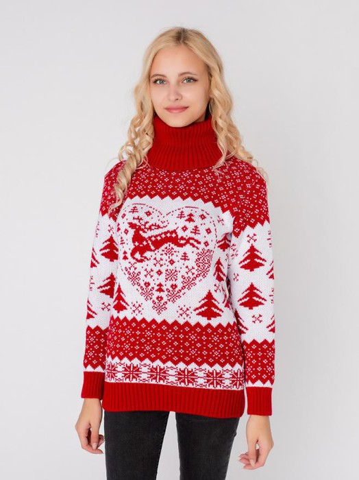 Совместные покупки Уфа Женская одежда Джемперы, свитеры, водолазки — ESENIA Водолазка женская полушерстяная Олени - Красный