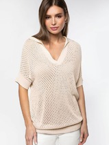 Vilatte Джемпер-поло из гладкой вискозы с лиоцеллом D39.633 овсяный