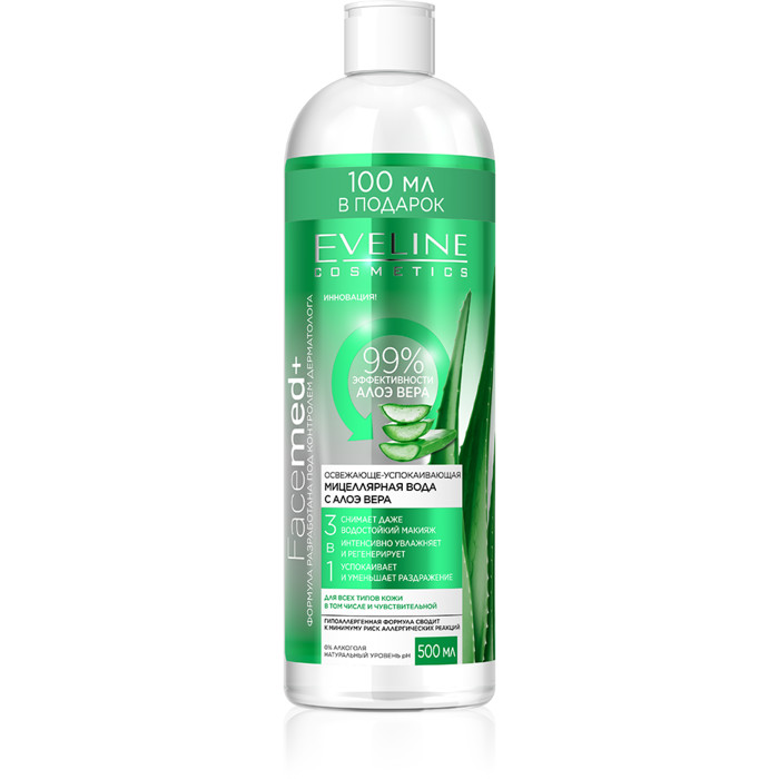 Освежающе-успокаивающая мицеллярная вода с алоэ вера разработана для легкого снятия макияжа, очищения и тонизирования кожи без аллергии.