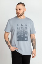 Фуфайка с коротким рукавом среднего объема, с оригинальным принтом, круглым вырезом горловины, которая оформлена обтачкой из рибаны.