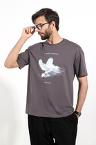 Фуфайка с коротким рукавом среднего объема, круглый вырез, горловина оформлена обтачкой из рибаны. Дополнена оригинальным принтом. Плотность: 150 гр/м2
