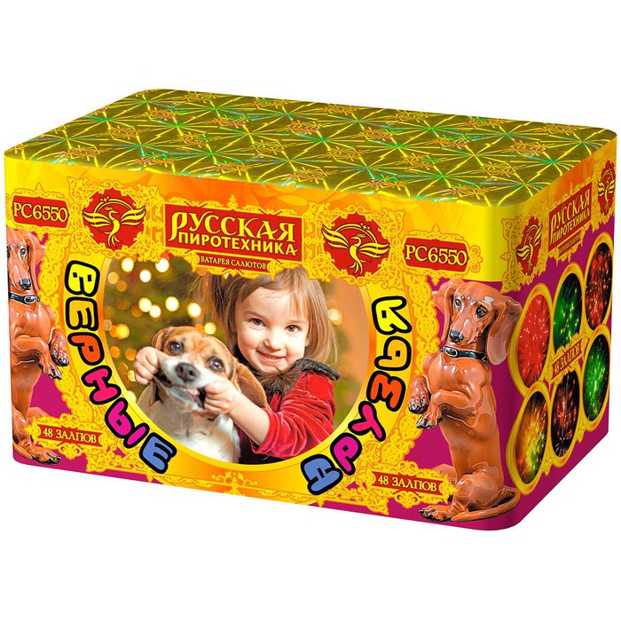 Фейерверк "Верные друзья" станет идеальным дополнением к веселой дружеской вечеринке! Только не забывайте, что запускать салют нужно на трезвую голову, не рискуйте! В этой яркой и красочной батарее - целых 4 разнообразных пиротехнических эффектов и 48 зарядов, вылетающих на высоту 10-ти этажного дома.