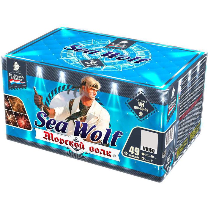 Настоящий морской волк не привык долго засиживаться на берегу. Его стихия - бушующий шторм, огромные волны и приключения в новых неизведанных землях. А как же быт истинного моряка? Здесь без силы и ловкости не обойтись. В жилах у нашего волка так и бурлит любовь к непокоренному океану. Золотые линии прибережных городов с красными небольшими огоньками переходят в трещащие искристые облака и шум волн, а вот и желтые тонкие линии с зелеными и малиновыми огнями. И опять шум трещащих искристых пенных волн. Но встреча с пиратами неизбежна! Двухъярусные эффекты: нижний золотой яркий фонтан и гремящее облако с малиновыми огнями, как два противостоящих друг другу корабля. Кто сильнее, у кого хватит мощности и отваги на все сражение? Бой прошел, похоже - ничья. И опять тихие золотые линии пальм с малиновыми, зелеными и алыми огненными плодами сменяются шумными пенными волнами и брызгами искр, издающими характерный треск. После небольшого затишья - опять в бой! Два кардинально отличающихся яруса: верхний - многочисленные золотые пальмы с треском и колючками искр в окружении зеленых и малиновых огней, а нижний - безудержный фонтан, переходящий в обычные выстрелы залпов. Победные выстрелы золотыми длинными искристыми пальмами, облаками вспышек и малиновых, оранжевых огней. Нелегка жизнь моряка: то штиль, то буря, то пираты.