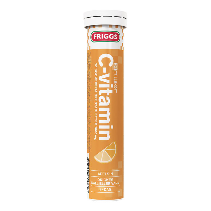 Friggs со вкусом апельсина витамин C 1000 мг в форме 20 шипучих таблеток. Шипучие таблетки Friggs Vitamin C не содержат сахара и быстро растворяются. 1 таблетка содержит 1 г витамина С. Витамин С - важный витамин, защищающий клетки нашего тела. Он способствует усвоению железа, полезен для кожи, костей, зубов и кровеносных сосудов, а также способствует нормальному функционированию иммунной системы. Пищевая добавка не заменяет разнообразное и сбалансированное питание или здоровый образ жизни. Содержит: вещества, регулирующие кислотность (лимонная кислота, бикарбонат натрия), витамин С (аскорбиновая кислота), наполнители (сорбит, маннит), ароматизатор, кукурузный крахмал, красители (бета-каротин, рибофлавин), подсластитель (сахарин натрия). Пищевая ценность 1 штуки: Витамин C 1000 миллиграмм. Страна производитель: Германия.