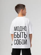 Футболка для девочек модной объемно-силуэтной формы, с вертикальным отстроченным швом по центру переда. На рукавах также выполнены декоративные вертикальные отстроченные швы и глубокие защипы по низу.