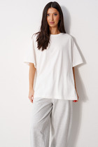 Футболка женская модной объемно-силуэтной формы, с вертикальным отстроченным швом по центру переда. На рукавах выполнены глубокие защипы по низу и также вертикальные отстроченные швы.