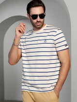 06.04 Vilatte Футболка из премиального хлопка с эластаном U49.024 экрю-св.синий