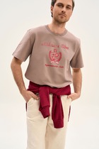 Мужская футболка из кулирки. Короткие рукава, прямой силуэт, горловина с треугольным вырезом декорирована тканью другого цвета и кнопками. Четыре варианта расцветки — голубая, индиго, антрацитовая и бордовая. Размеры от 54 до 62. Возможна розница.