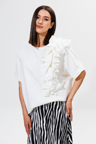Vilatte Футболка из премиального хлопка с авторским принтом D49.983 белый_flower