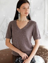 Vilatte Джемпер с V вырезом и коротким рукавом из хлопковой пряжи с пайетками D3