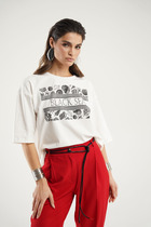 Vilatte Футболка из премиального хлопка с авторским принтом D49.117 кофейный мел