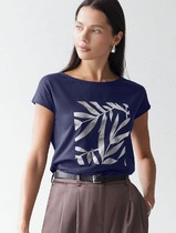 Vilatte Нарядная футболка с принтом фольгой из премиального хлопка с эластаном D