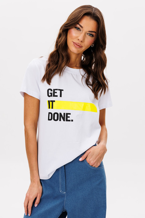 Базовые футболки - это конечно хорошо, но что делать, если хочется привнести в образ яркости, иронии и немного артистизма? Лучший способ выразить себя - выбрать вариант с классным говорящим принтом. Футболка классического кроя с втачным рукавом. Длина футболки около 60 см. Длина рукава около 15 см.