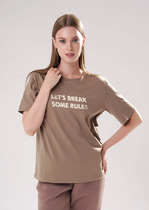Футболка молодежная из гладкокрашенного трикотажного полотна «кулирка» с лайкрой, свободная покроя «оверсайз», с горловиной овальной формы, обработанной притачной планкой, рукавами длиной до локтя. На полочке выполнена печать в технике «шелкографии».