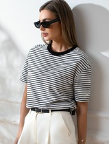 Vilatte Свободная футболка из премиального хлопка с эластаном D49.144 белый-черн