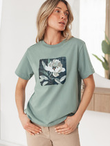 Vilatte Футболка из премиального хлопка с принтом фольгой D49.098 св.оливковый_п