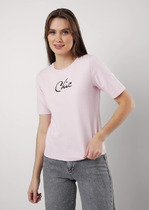 Футболка женская из гладкокрашенного трикотажного полотна «кулирка с лайкрой», свободного покроя, с короткими втачными рукавами, горловиной овальной формы, обработанной втачной планкой. По центру полочки выполнена вышивка «пайетками» в тон изделия.
