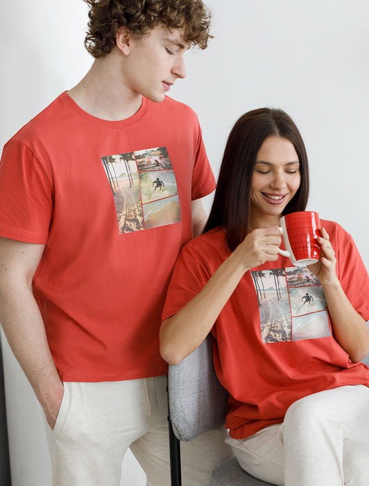 Футболка мужская коралловая с принтом